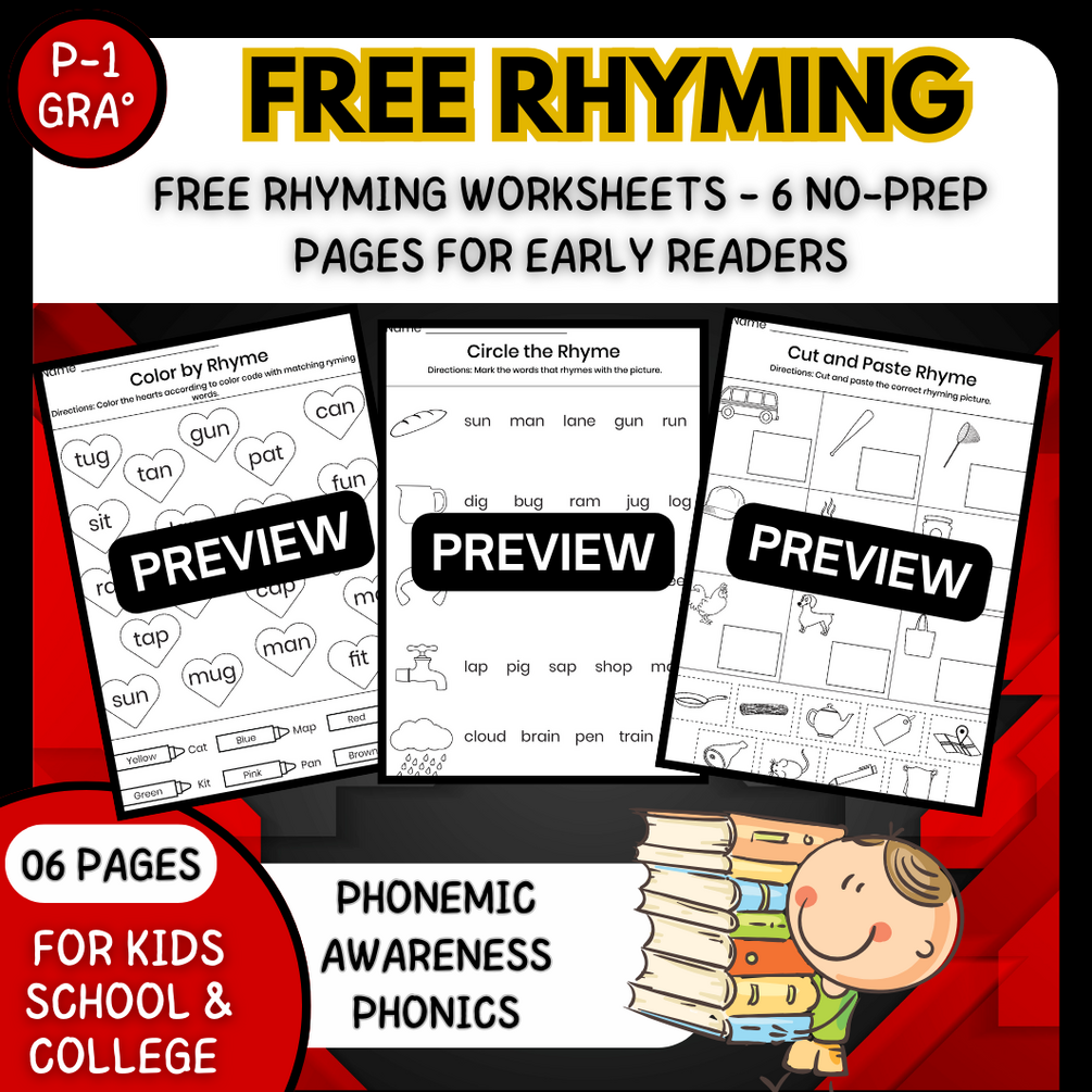 FREE Rhyming Worksheets - 6 No-Prep Pages for Early Readers